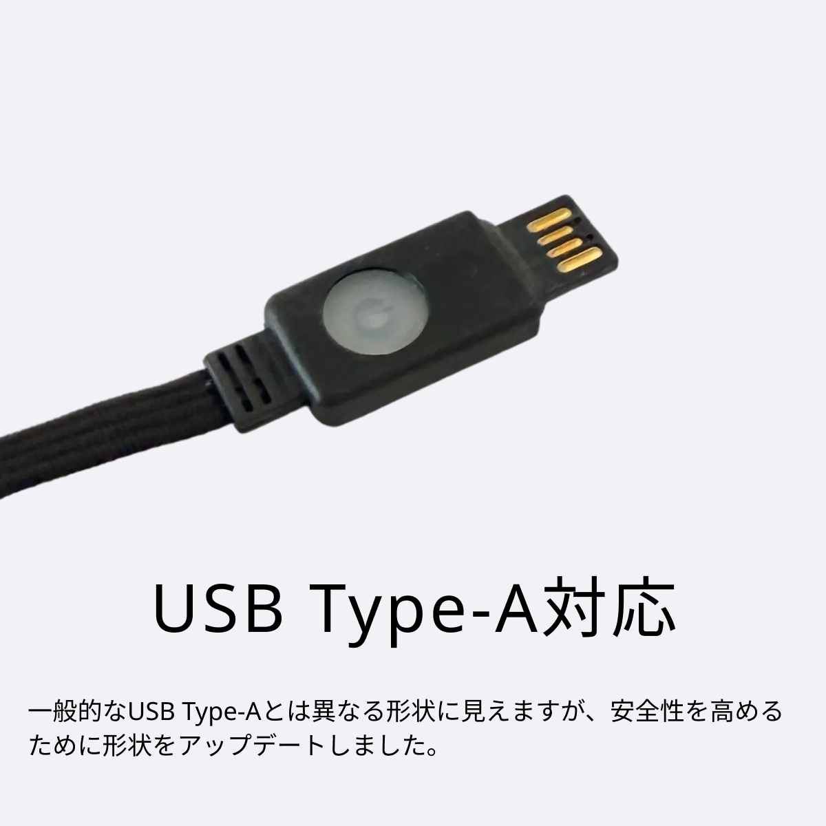 一般的なUSB Type-Aとは異なる形状に見えますが、安全性を高めるために形状をアップデートしました。